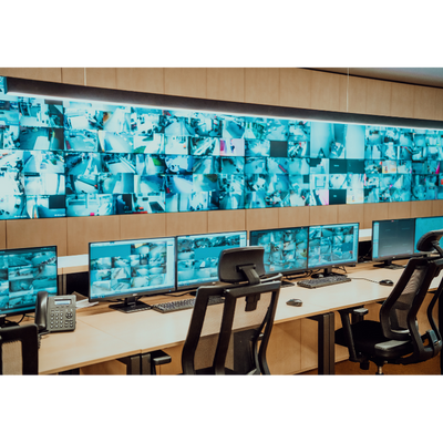 Video wall installations are suitable for large CCTV camera systems allowing security operators to monitor live activity and incidents throughout a premises.